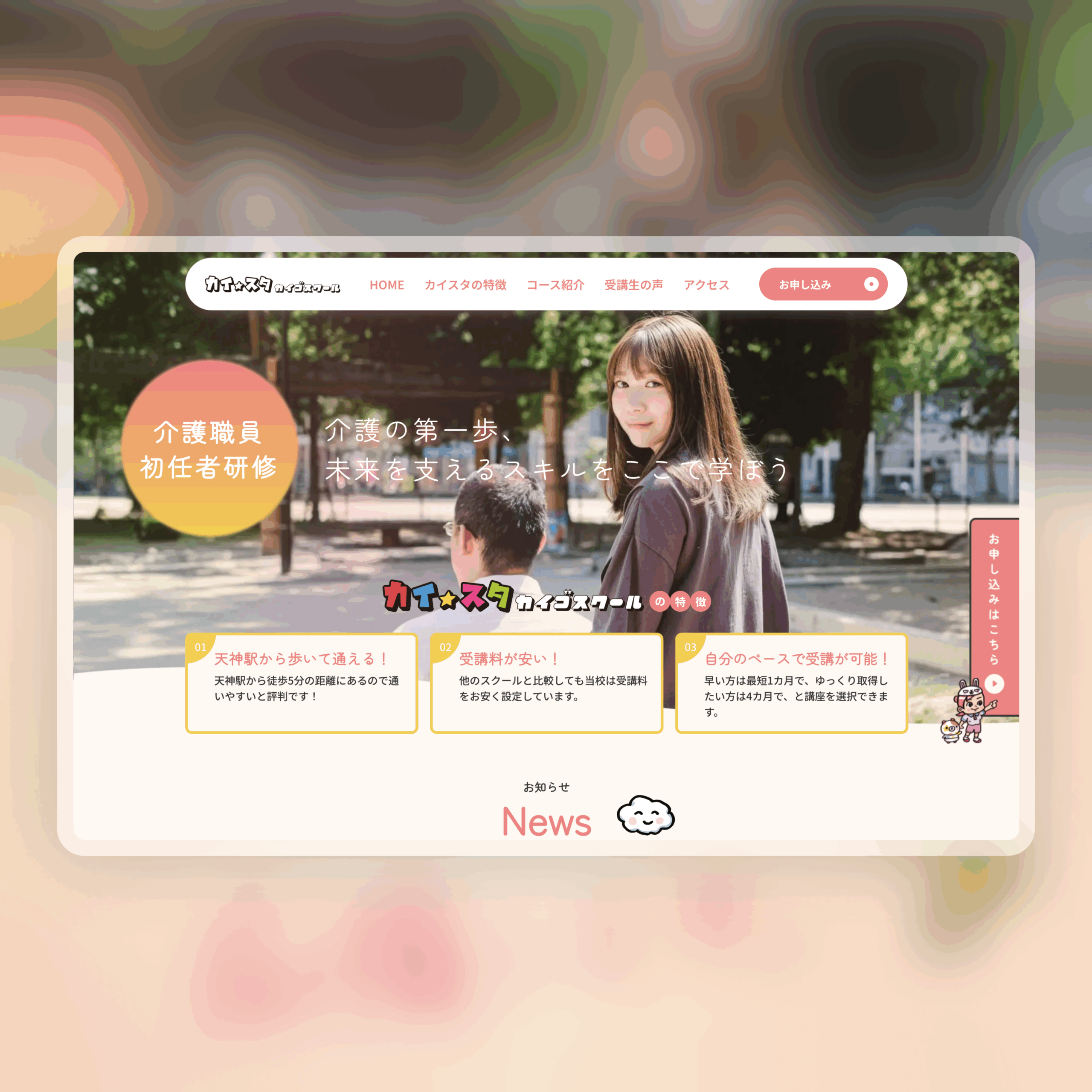 福岡の企業様からご依頼があった案件です。既存サイトはあったものの、デザインや導線の見直しを目的にリニューアルを検討されていました。運営されている介護資格スクールが2種類あり、初任者研修と実務者研修それぞれに対応したサイト制作をご希望でした。
